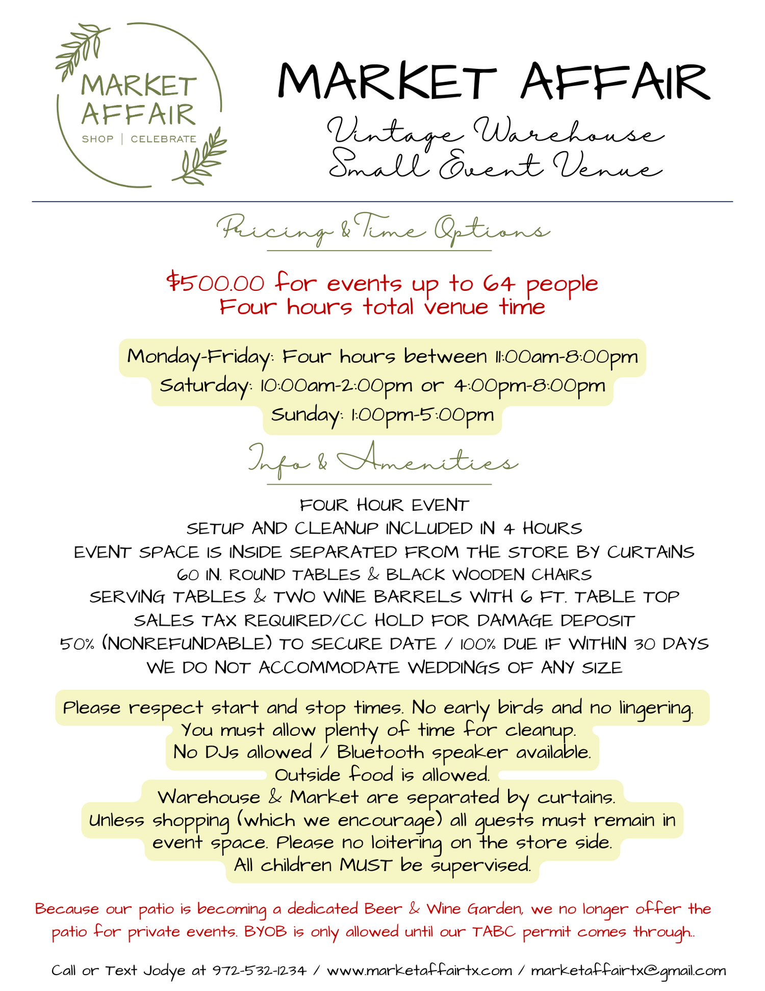 With our beautiful, exposed brick walls and cafe string lighting, the vintage warehouse is perfect for your small event. It's pretty great on its own, or you can add your own decorating touches.